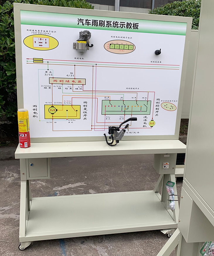 2.示教板面板采用耐創(chuàng)擊、耐污染、防火、防潮的高級鋁塑板,表面經(jīng)特殊工藝噴涂底漆處理;學(xué)校學(xué)員可直觀對照電路圖和實物,認(rèn)識和分析汽車雨刮和清洗系統(tǒng)的工作原理。
