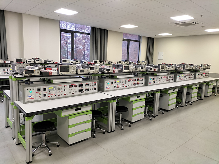 電工電子實訓室設備通過課程實訓主要培養(yǎng)學生電子電路的模擬搭建、測試、電子電路的設計、電工電路的搭接、測試及調試、電動機、變壓器的拆裝、檢修及控制能力,主要完成模擬電子電路分析與應用、數字電子電路分析與應用、電路與電工技術、電機拖動等課程實驗實訓使用,培養(yǎng)和提高實踐動手能力。電工電子技術實訓室設備、機電一體化技術、電氣自動化技術、電梯工程技術、建筑電氣工程技術等專業(yè)實訓《電路原理》、《電工技術》、《數字電路》等課程實驗。實驗臺采用碩博教儀的通用電工實驗裝置,學生可以明顯直觀地了解線路結構與實驗原理。電工電子實驗室教學目的是:使學生在電路基礎實驗的基本知識、基本方法和基本技能方面受到較系統(tǒng)的教育與訓練,加深與鞏固對電路的基本概念和規(guī)律的認識,培養(yǎng)學生具有初步的實驗能力,良好的實驗習慣以及嚴謹的科學態(tài)度與作風,為后續(xù)實驗課程以及從事電路基礎方面的科研工作打好的基礎。上海碩博弘揚大國工匠精神, 發(fā)展職業(yè)教育,應用教學設備,為企業(yè)培養(yǎng)高技能人才,電工電子電機變壓器的基本理論,培養(yǎng)中職學生實作動手能力。體現”寬基礎、強技能”的人才培養(yǎng)理念,使理論講解與技能培養(yǎng)有機結合在一起,符合學生的認知規(guī)律?捎米髦械嚷殬I(yè)學校電工電子電氣技術實訓設備。而專業(yè)生產:高性能電工技術實訓考核裝置、高性能電工電子/電力拖動/儀表照明/自動化綜合實訓考核裝置、高性能電工·電子技術實訓考核裝置、高性能電工·電子·電力拖動技術實訓考核裝置、高性能電工電子電拖及自動化技術實訓與考核裝置、高性能電工電子電拖及自動化技術實訓與考核裝置、高級工電子技術實訓考核裝置、技師電子技術實訓考核裝置、高級技師電子技術實訓考核裝置、技師、高級工電子技術實訓考核裝置、電力電子高級技師實訓考核裝置、電力電子技師實訓考核裝置、電力電子高級工實訓考核裝置(無自動設故功能)、高級電工實驗室成套設備、高級模電、數電實驗室成套設備、高級電工、模電、數電綜合實驗室成套設備、高級電工、模電、數電、電力拖動實驗室成套設備、高級電工、模電、數電、電力拖動(帶直流電機)實驗室成套設備、電力拖動(工廠電氣控制)實驗裝置(帶直流電機)、電工技術實驗裝置、電工電子實驗裝置、電工電子電力拖動實驗裝置、電工電子電力拖動實驗裝置(帶PLC實驗)、電工·電子·電力拖動·PLC·單片機綜合實驗裝置、電工·電子·電力拖動·PLC·變頻調速綜合實驗裝置、高級電工技術實驗裝置、電工電子技術實驗裝置、電工電子電力拖動實驗裝置、現代電工技術實驗裝置、現代電工電子技術實驗裝置、電子學綜合實驗裝置、模擬電子電路實驗裝置、數字電路實驗裝置、電機及電氣技術實驗裝置、電機及電氣技術實驗裝置、電力拖動·PLC·變頻調速技能實訓裝置 、智能型電工/電子/電拖/PLC/單片機綜合實驗裝置。