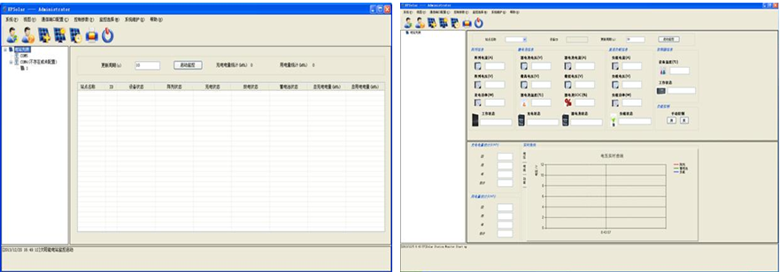 該項目主控系統(tǒng)采用國內(nèi)知名廠商所生產(chǎn)的iTracer系列MPPT控制器,該控制器是一款基于多相位同步整流技術(shù)的高端產(chǎn)品,適用于離網(wǎng)型光伏系統(tǒng),控制器內(nèi)建靈敏的最大功率點跟蹤算法,迅速并準(zhǔn)確地找到光伏電池最大功率點以獲取更多的光伏能源,提高效率,降低系統(tǒng)成本?刂破魍ㄟ^配套USB通訊線可連接PC機(jī)監(jiān)控軟件,可實現(xiàn)單臺或多臺控制器的遠(yuǎn)程實時監(jiān)控、參數(shù)修改、負(fù)載設(shè)置等光伏系統(tǒng)管理功能。