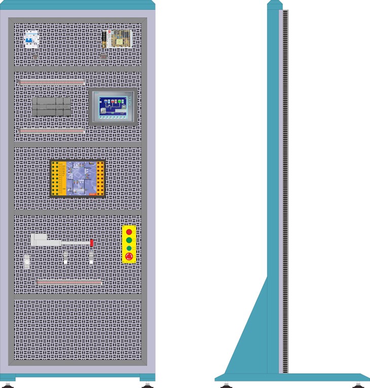 配套教學使用的對象,三層電梯、自動售貨機、機械手、自動門、天塔之光、全自動洗衣機、自動成型機、紅綠燈、裝配流水線、四路搶答器、音樂噴泉、軋鋼機、郵件分揀、運料小車、物料分揀、多級傳輸帶等模擬控制實訓,指示燈采用貼片雙色LED,面板采用3D立體彩色搭配設計,使模擬對象更直觀立體,開關采用自復位兼自鎖一體設計使實訓能靈活實用,為適用各類PLC模塊具有輸入信號高低電平切換功能。