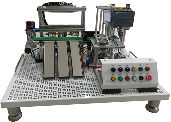 (1)系統(tǒng)包含氣動控制、電機傳動、位置控制、傳感器檢測等內(nèi)容,為實際工業(yè)現(xiàn)場生產(chǎn)設(shè)備的微縮裝置。基于多種傳感器的檢測的精確定位,實現(xiàn)對不同材質(zhì)、不同顏色物體的分揀。可充分鍛煉操作者系統(tǒng)接線、機械調(diào)試安裝、軟件編程、獨立構(gòu)建控制系統(tǒng)、反饋整定、故障檢測及檢修的能力。配有空氣壓縮機:靜音無油,工作電源AC220V±10% 50Hz,輸入功率0.68kW;公稱容積24L,理論流量:116L/min,額定輸出氣壓0.7MPa。