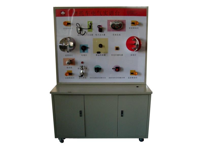 摩托車整機總成、起動運行所有相關的原車附件、故障模擬考核和排除系統(tǒng)、原車電路原理圖板及檢測端子、蓄電池、控制面板柜、可移動臺架、臺架電源總開關、臺架操作說明書、實驗指導書等附件。