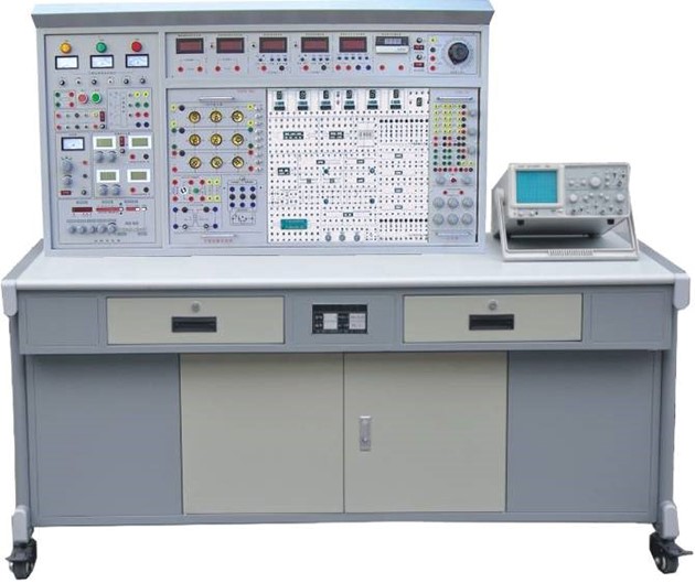 提供四位十進(jìn)制譯碼顯示器、8位邏輯電平開關(guān)、8位電平指示器、三態(tài)邏輯筆、脈沖信號源(正、負(fù)輸出單次脈沖和頻率為0.5Hz~300KHz連續(xù)可調(diào)的計(jì)數(shù)脈沖源各一路),設(shè)有一些高可靠圓腳集成電路插座(9P、14P、16P、28P、40P若干只)。實(shí)訓(xùn)箱還配有單管/負(fù)反饋兩級放大器、射極跟隨器、RC串聯(lián)選頻網(wǎng)絡(luò)振蕩器、差動放大器及低頻OTL功率放大器共五塊固定線路實(shí)訓(xùn)板。可采用固定線路或分立元件靈活組合進(jìn)行實(shí)訓(xùn)。